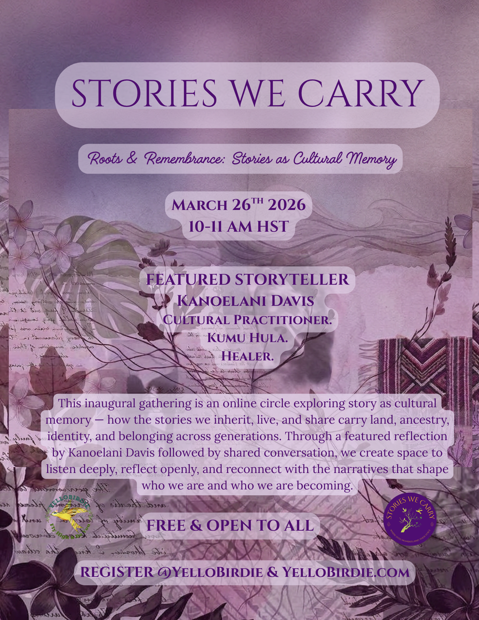 NEW ** STORIES WE CARRY ** MARCH 26th ONLINE APRIL 14th IN PERSON**
