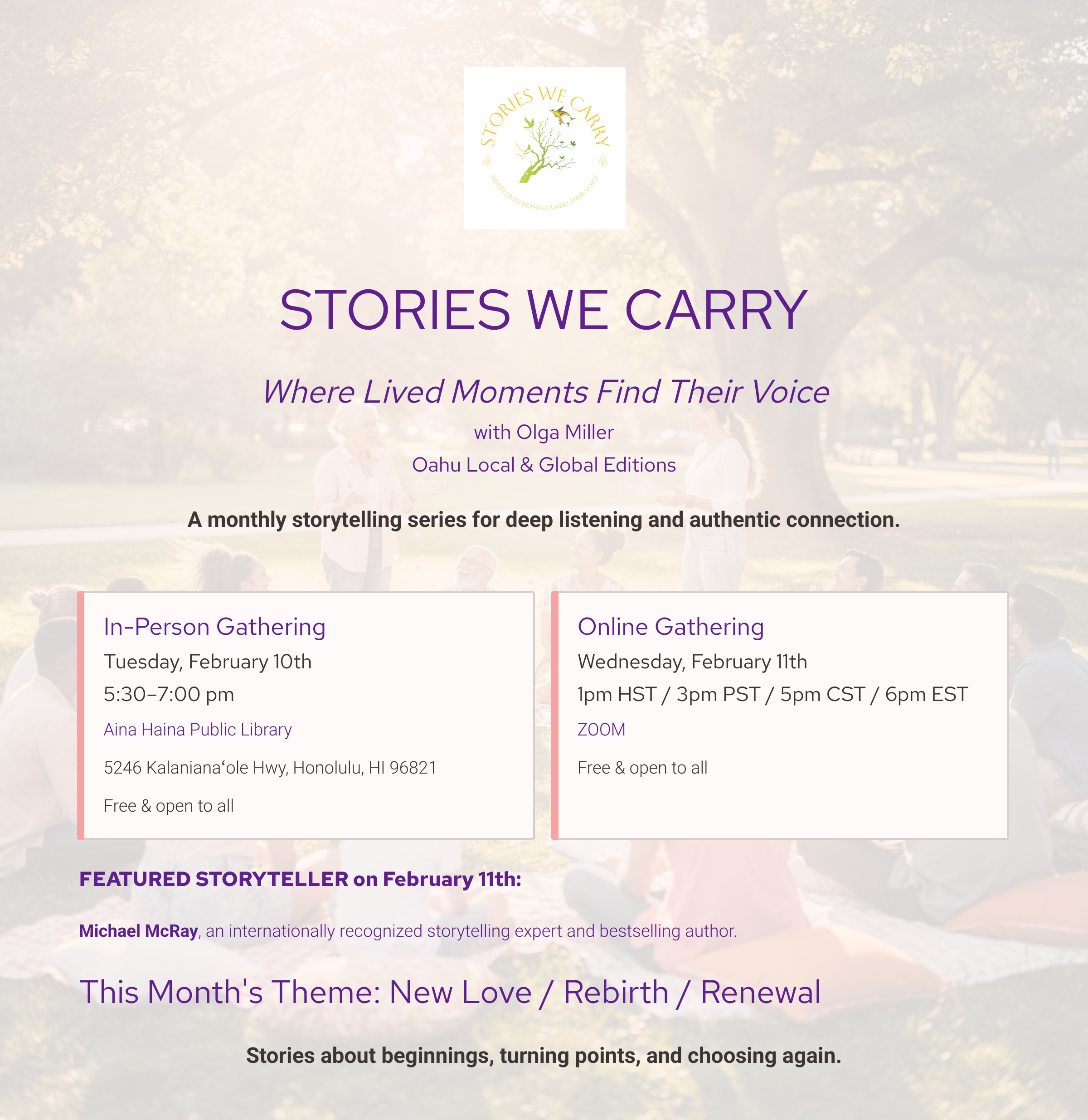 NEW ** STORIES WE CARRY ** FEBRUARY 10th IN-PERSON & FEBRUARY 11th ONLINE**